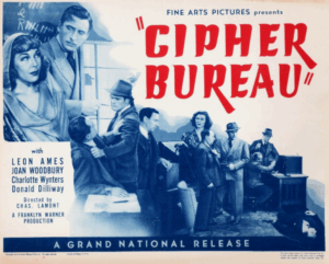 I was therefore pleasantly surprised to find “Cipher Bureau” (1938), a nice little (one-hour-long) film that not only shows you some ciphers on screen, but also (kind of) breaks them in front of your eyes. And it’s available for free (and without YouTube ads) on the most excellent Internet Archive.